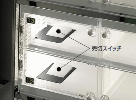 購入した商品を取り出す前に扉を閉めても、商品が売切スイッチの上に載っていれば、再度扉を開く事が出来ます。